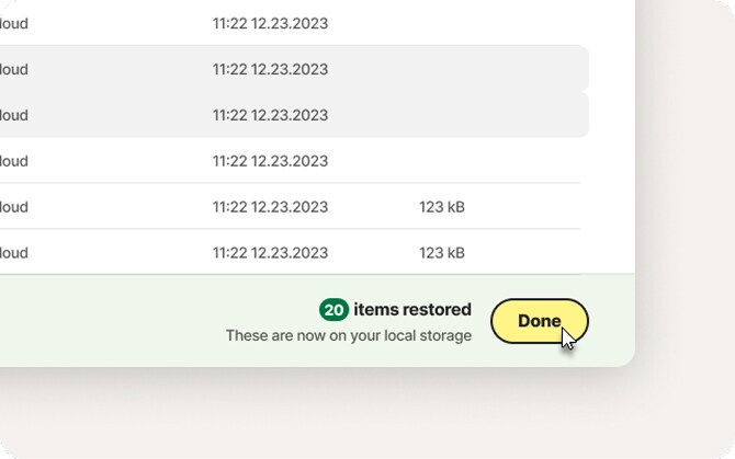 Lost your laptop? Hit by ransomware? No need to worry, just sign in from any device to restore your files in a few clicks.
